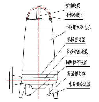 水泵可配螺旋型雜物切割系統(tǒng),割刀與切割盆可進行粗、細兩刀工序切割,切割效果好,且零件更換極其方便,停機時間更少。